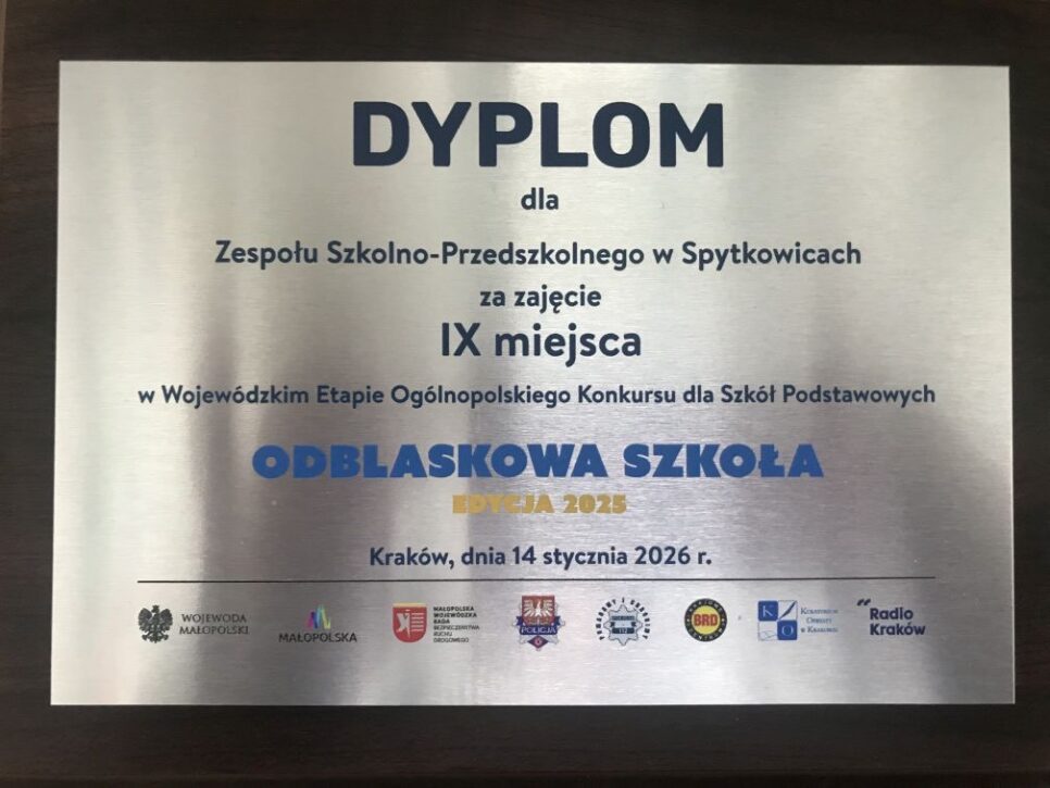 14 stycznia 2026 roku na długo pozostanie w pamięci uczniów i nauczycieli Szkoły Podstawowej nr 1 w Spytkowicach. Tego dnia w Kinie Kijów w Krakowie odbyła się finałowa gala Wojewódzkiego Finału Ogólnopolskiego Konkursu „Odblaskowa Szkoła 2025”.