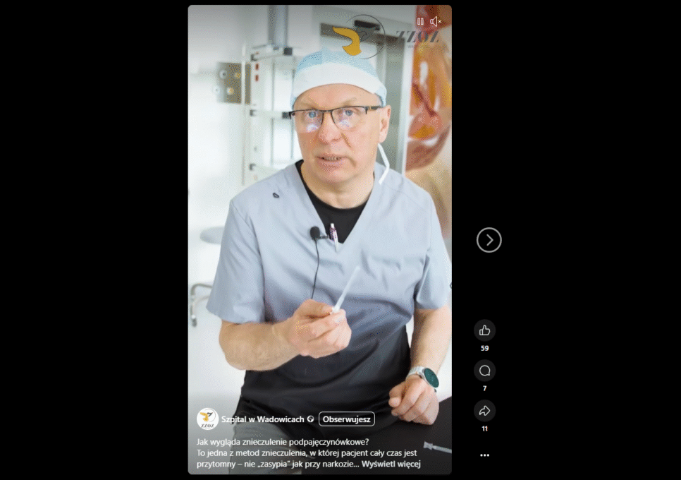 Wadowicki ZZOZ postanowił głośniej mówić o swojej pracy w internecie. Na profilu placówki pojawiła się krótka „rolka”, w której anestezjolog Zbigniew Żyła przystępnie wyjaśnia, na czym polega znieczulenie podawane w okolice kręgosłupa. Dynamiczna forma, poczucie humoru i pewność „prowadzącego” sprawiły, że materiał wyraźnie wyróżnił się na tle wcześniejszych publikacji szpitala i szybko zebrał pozytywne reakcje. W komentarzach przewijają się pochwały: „super lekarz”, „najlepszy doktor”, „cudowny, ciepły i bardzo opiekuńczy Pan Doktor”.