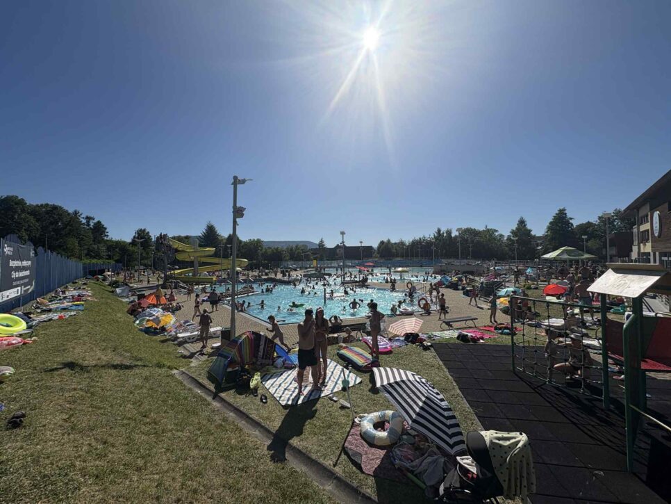Basen otwarty od godziny 9:00 szybko zapełnił się rodzinami z dziećmi, młodzieżą i seniorami szukającymi chwili wytchnienia. Woda, wyjątkowo chłodna o poranku, po południu stała się jedyną nadzieją na orzeźwienie. Nawet po godzinie 16:00 wciąż ustawiały się kolejki, a wolnych miejsc w basenie praktycznie nie było.