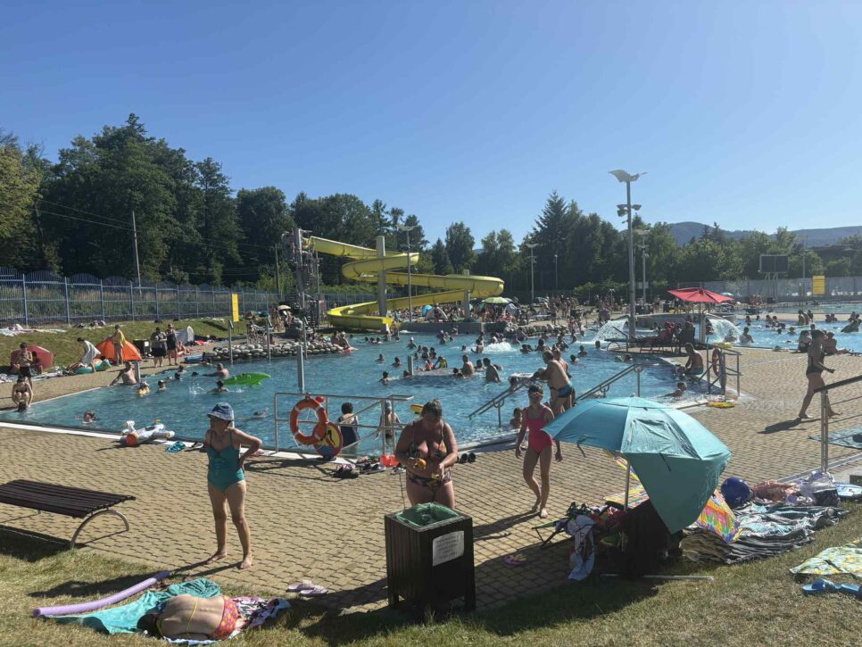Basen otwarty od godziny 9:00 szybko zapełnił się rodzinami z dziećmi, młodzieżą i seniorami szukającymi chwili wytchnienia. Woda, wyjątkowo chłodna o poranku, po południu stała się jedyną nadzieją na orzeźwienie. Nawet po godzinie 16:00 wciąż ustawiały się kolejki, a wolnych miejsc w basenie praktycznie nie było.