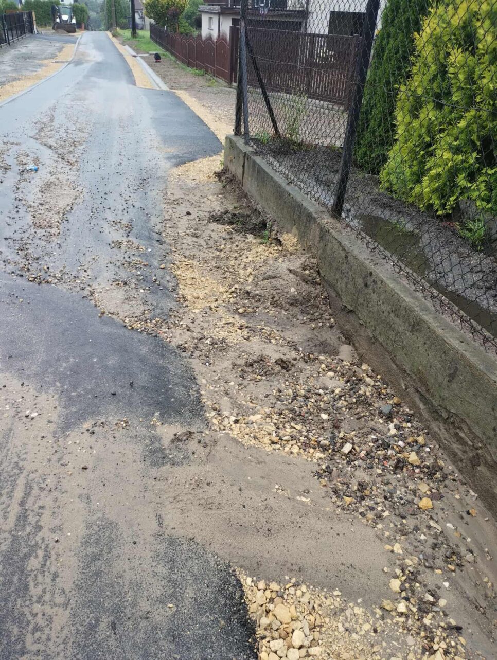 Zgłoszenie mieszkańców wskazuje, że problem może mieć charakter powtarzalny i wynikać z braku odpowiedniego odprowadzenia wody opadowej. Ulewy wypłukują ziemię z poboczy, która następnie spływa na jezdnię, tworząc nie tylko błoto i śliską nawierzchnię, ale także ryzyko uszkodzenia infrastruktury drogowej.