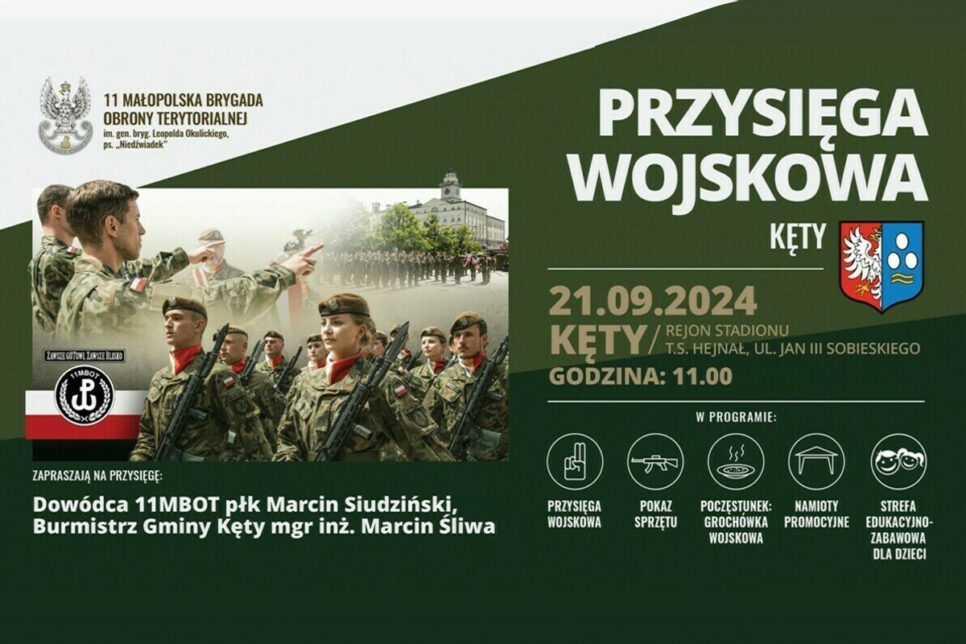 Przysięga wojskowa to wyjątkowy moment zarówno dla żołnierzy, jak i ich rodzin. Wydarzenie będzie współorganizowane z Urzędem Gminy Kęty, a oprawę muzyczną zapewni Orkiestra Wojskowa.