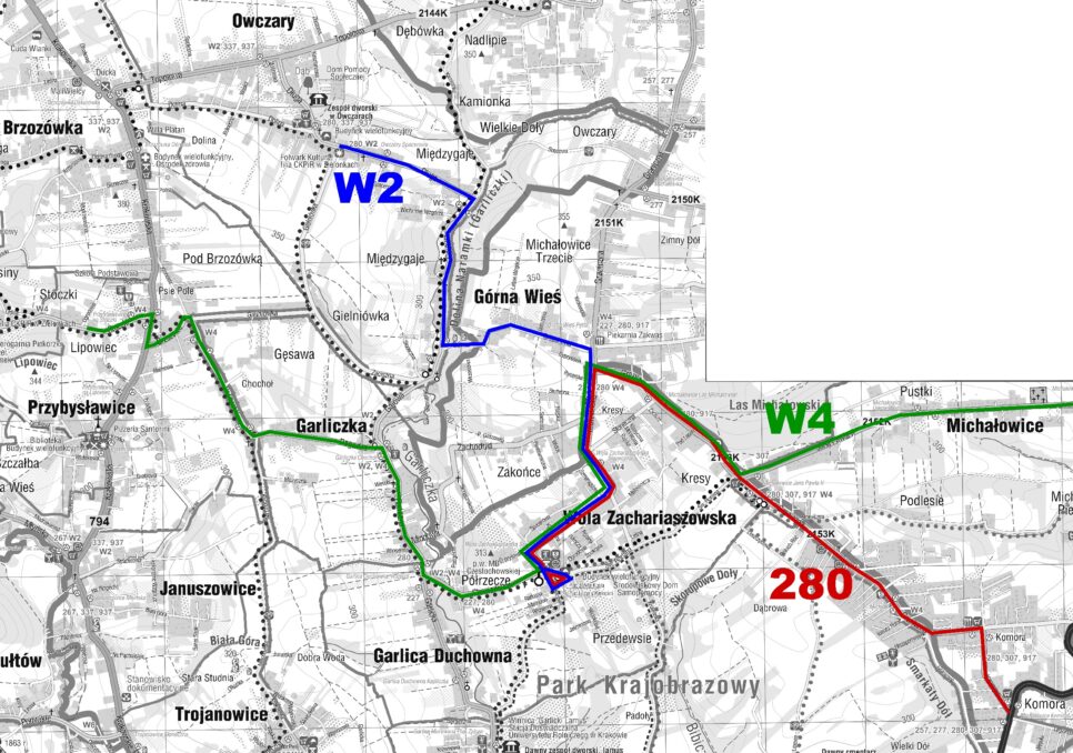 W czasie prac (3–5.12.2025) kursy linii W2 będą odbywać się zmienioną trasą: Grębynice Mogiełki – Grębynice Pętla – Grębynice Remiza – Korzkiew Zamek – Korzkiew Botoja – Przybysławice II – Przybysławice III – Przybysławice I – Brzozówka Ośrodek – Brzozówka Oskarówka – Owczary Długa – Owczary Pętla – Owczary Spacerowa – Owczary Gajowa – Owczary Górna – Wola Zachariaszowska Pętla. W tym okresie przystanki Garliczka Chochół oraz Garlica Duchowna Rozjazd nie będą obsługiwane.