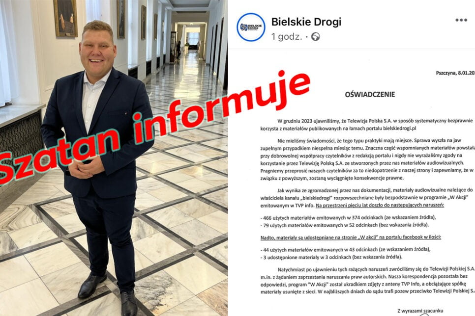 Jak przekazuje nam reporter terenowy Miłosz Szatan: Bielskie Drogi to największy serwis informacyjny z regionu Bielska-Białej. Codziennie odwiedzane przez dziesiątki tysięcy osób z ogromnymi zasięgami. Okazało się, że przez lata z ich pracy korzystali dziennikarze Telewizji Polskiej, tworząc program „W akcji”. Przez kilka lat „podwędzili” dziennikarzom i czytelnikom Bielskich Dróg niemal 600 materiałów (część bez […]
