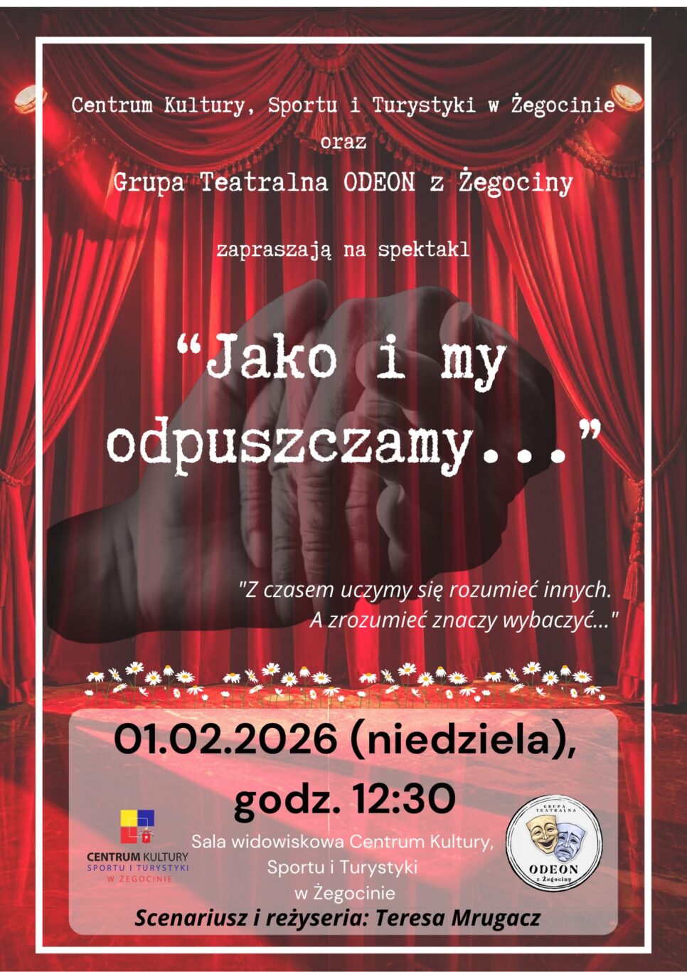 O 12:30 w sali widowiskowej Centrum Kultury, Sportu i Turystyki wystąpi Grupa Teatralna Odeon z przygotowanym spektaklem.