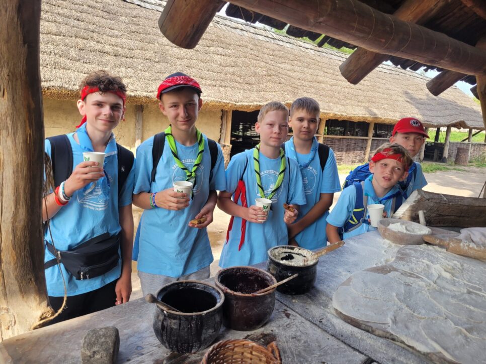 Pierwsze drużyny ruszyły na obozy już pod koniec czerwca. Harcerze z drużyn z całego hufca spotkali się w Pogorzelicy, gdzie odbywał się obóz hufca pod hasłem „Wehikuł Czasu”. Przez dwa tygodnie uczestnicy przenosili się między epokami – od czasów prehistorycznych, przez średniowiecze, aż po współczesność. Każdy dzień stawał się podróżą w inny świat, a fabuła pomagała w naturalny sposób uczyć odpowiedzialności, współdziałania i twórczego podejścia do codziennych wyzwań. Harcerze wrócili nie tylko z nowymi umiejętnościami obozowymi, ale i z przekonaniem, że historia to coś więcej niż szkolne daty i podręczniki – to źródło inspiracji dla współczesności. Bogata relacja z obozu znajduje się na specjalnej stronie internetowej: pogorzelica2025.wadowice.zhp.pl.
