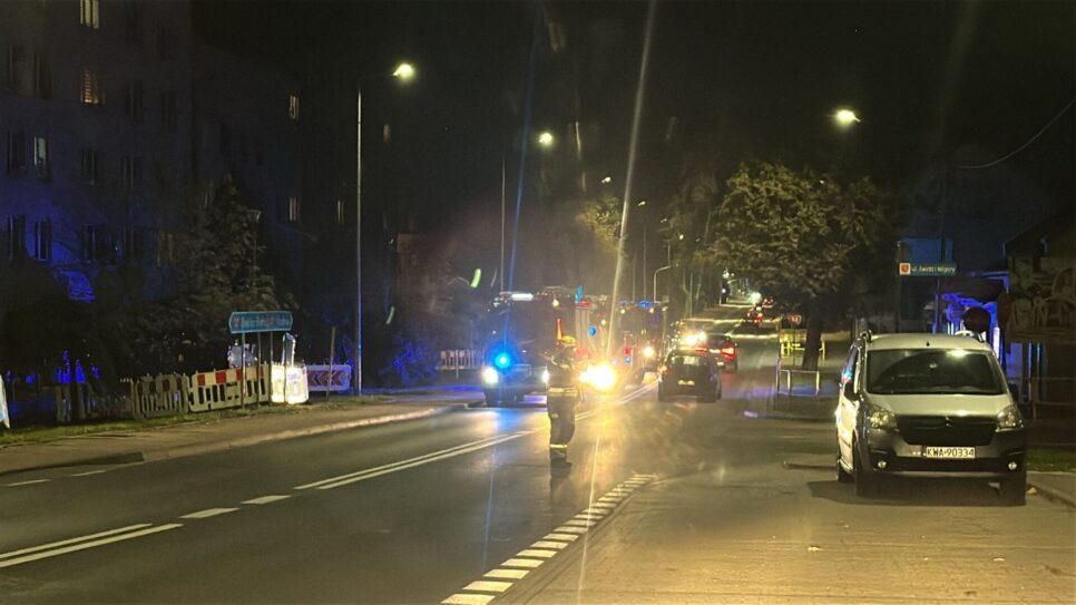 Strażacy sprawdzili budynek. Zagrożenia nie stwierdzono. Ul. Krakowska była częściowo zablokowana na czas działania strażaków
