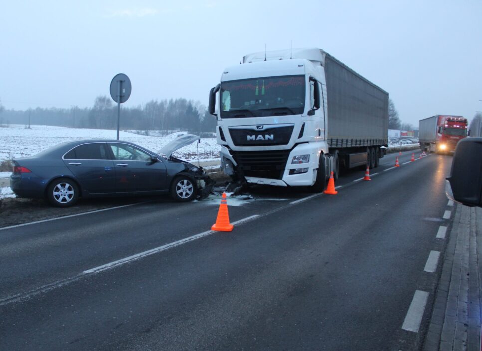 Jak ustalili funkcjonariusze, 47-letni mieszkaniec gminy Zator, kierujący samochodem osobowym marki Honda, zjechał na przeciwległy pas ruchu, gdzie doszło do zderzenia z samochodem ciężarowym marki MAN. W pojeździe osobowym oprócz kierowcy podróżowało dwoje dzieci. Jak przekazują policjanci, wszyscy uczestnicy zdarzenia mieli prawidłowo zapięte pasy bezpieczeństwa, a dzieci znajdowały się w odpowiednio zamocowanych fotelikach.
